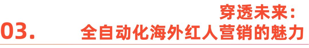 在指數級躍遷的今天,AI在海外網紅營銷中的運用遠不止如此,100%自動化、無監督的紅人營銷時代正在擲地有聲的向我們走來:輸入營銷需求→自動化任務編排,而實現這個維度裂變,需要海外網紅營銷sasa企業具備深厚的AI能力,比如網紅數據來源多樣化與歸一能力、網紅One ID統一識別、紅人標籤體系動態性、上下文感知與預測能力等等。