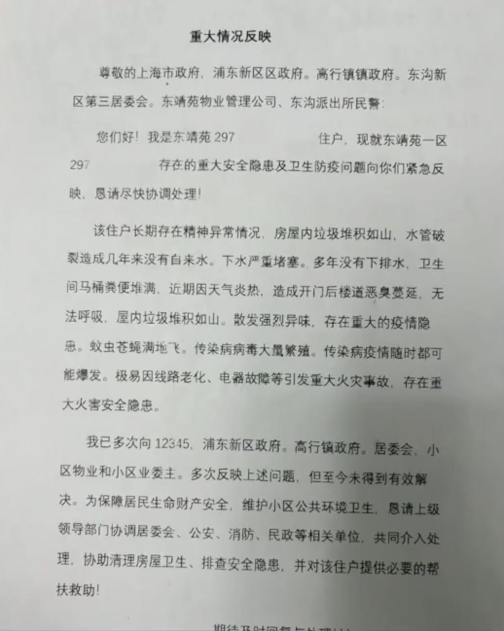 鄰居們曾多次與家屬反映情況,不過對方嘴上説好的好的,然後就沒有然後了,鄰居們都很無奈。