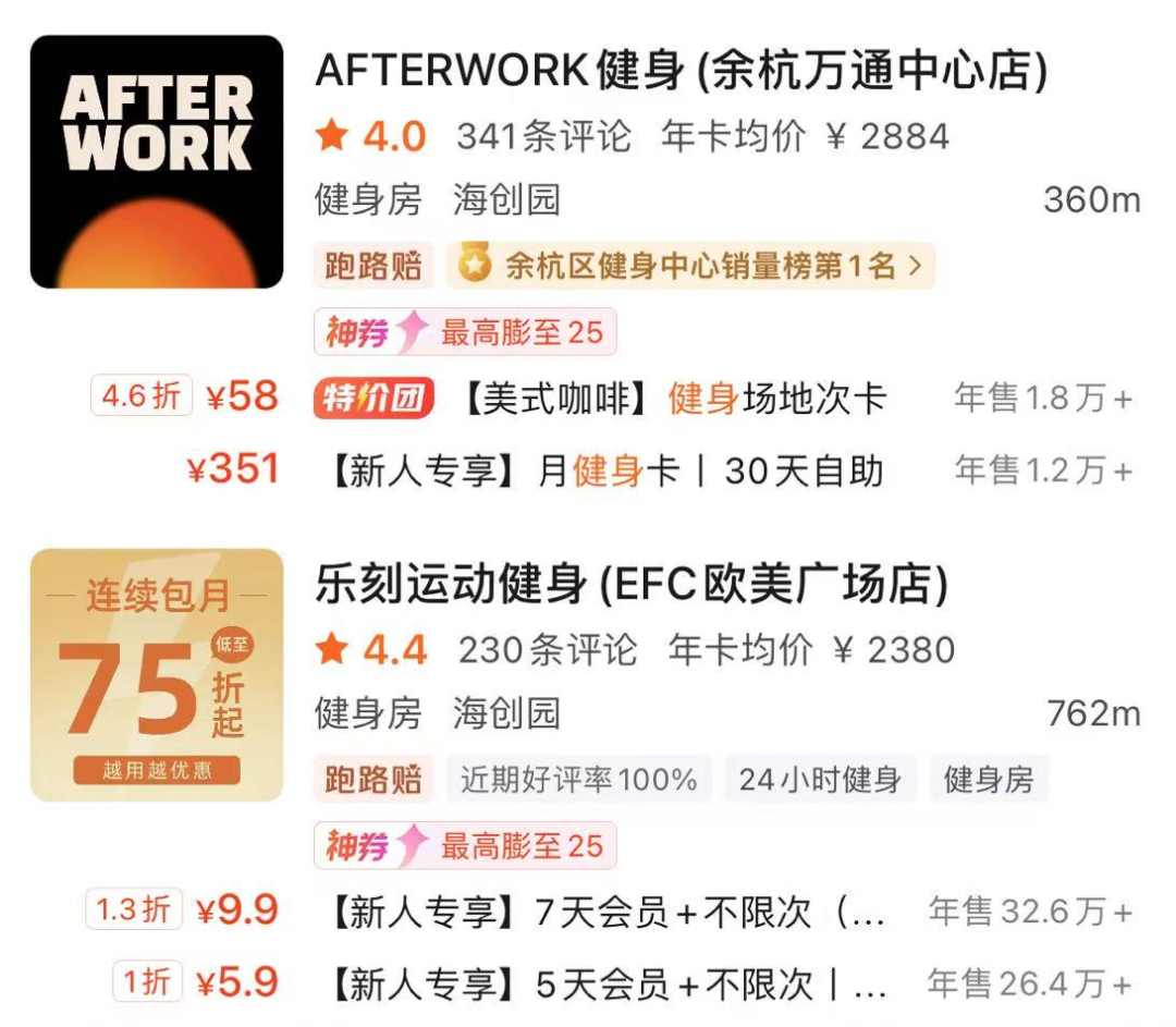 而且這幾年,消費者的需求也在發生變化。美團數據顯示,“健身月卡”成為了健身行業Top 1的商品熱搜詞。