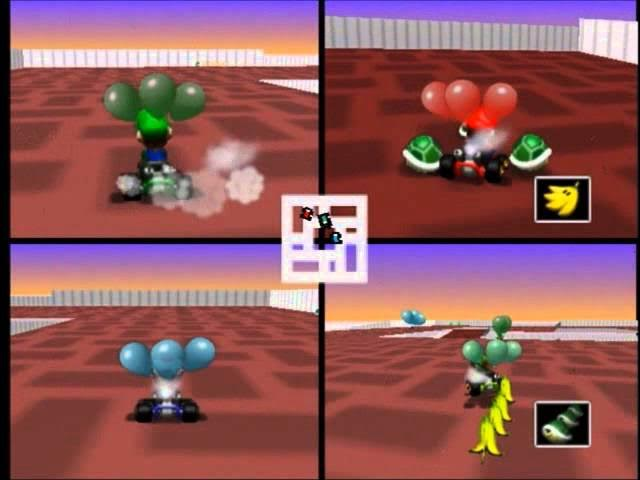 而且能讓第一名瞬間跌至谷底的高血壓道具——藍龜殼,也第一次在 N64 這一部登場( 藍龜殼:使用後會迅速向第一名飛去,將第一名轟炸 )。