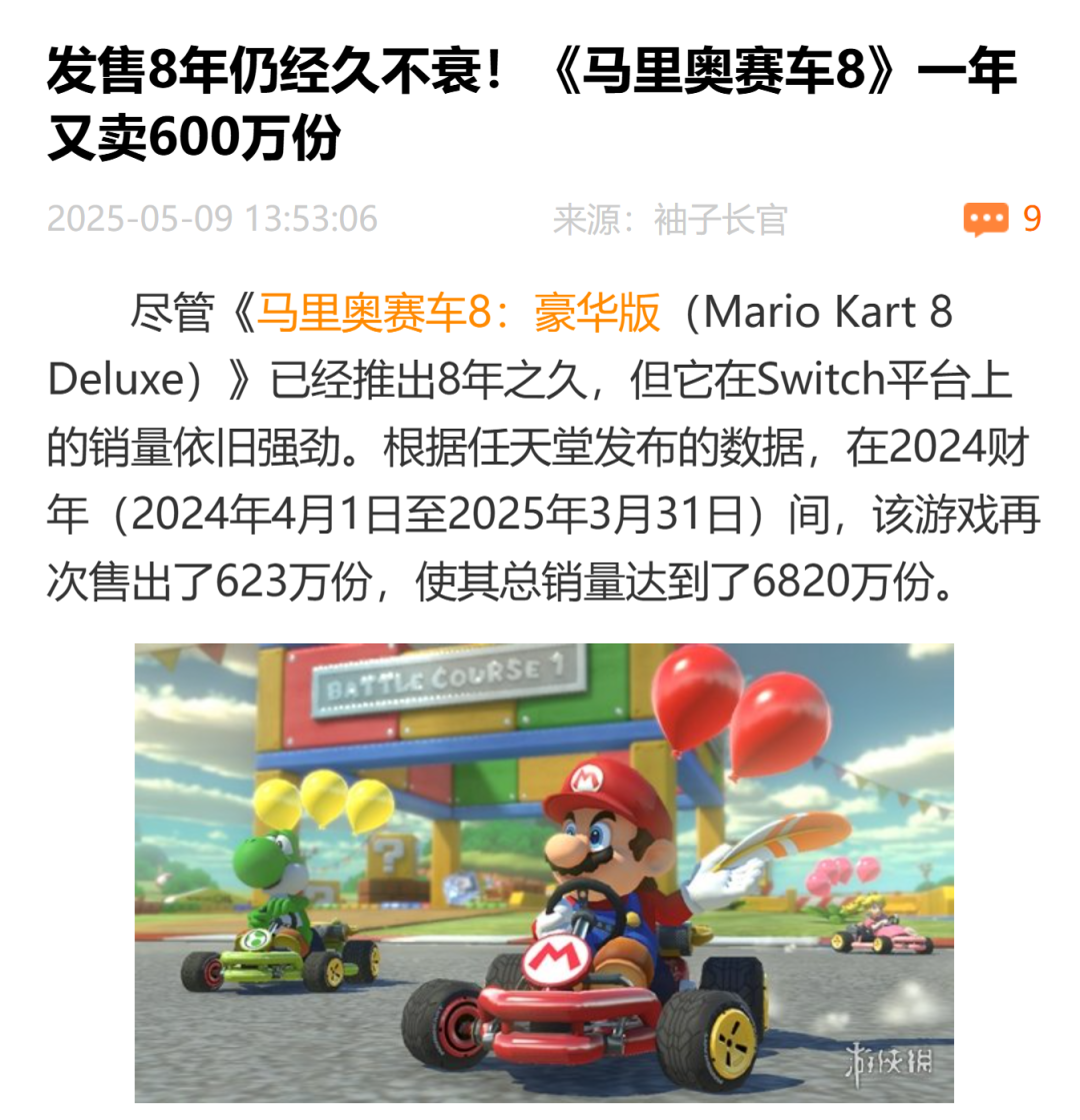 可馬車 8 對於大部分 WiiU 玩家來説,幾乎是人手一個,購機必備,足足賣了 800 多萬套,足以見得其底子還是相當優秀的。