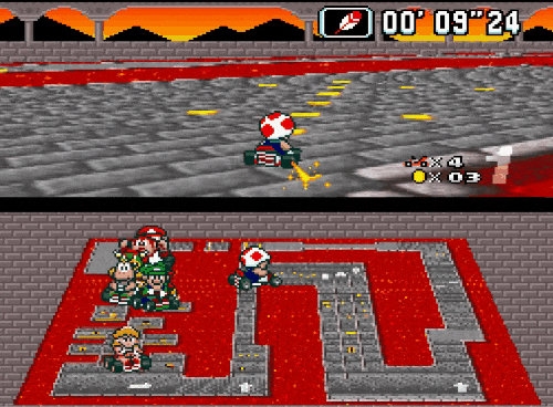因為 4 人分屏極其佔用遊戲機的內存,所以為了減低運算壓力,只有場景是 3D 搭建的,人物和車輛則是會動的貼圖。