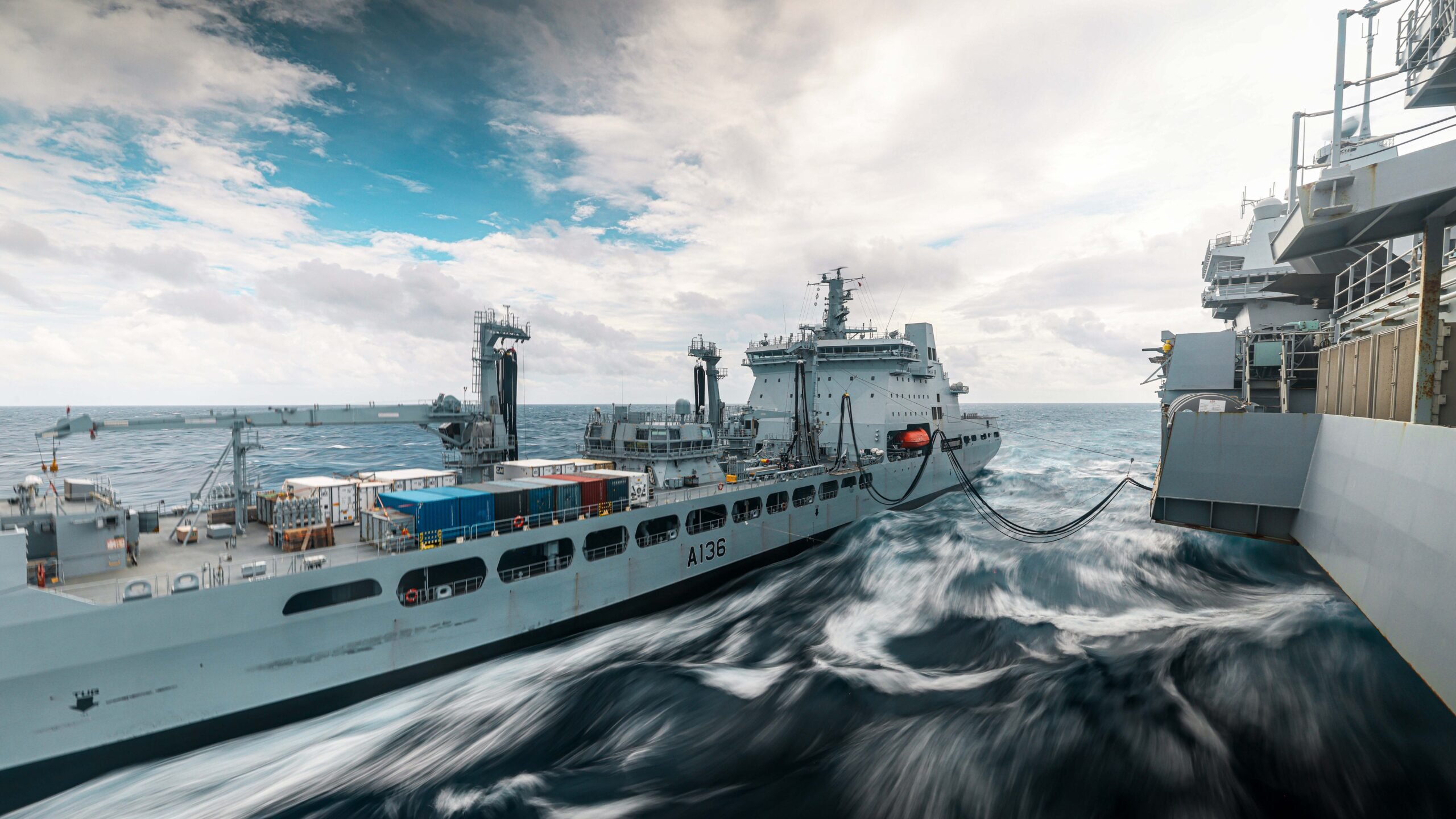 2025年6月12日,“威爾士親王”號航空母艦與皇家艦隊輔助油輪“春潮”號進行海上補給。皇家海軍照片