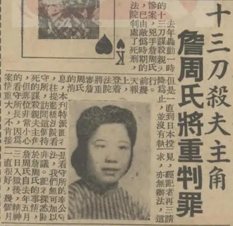當時的上海正處於抗戰勝利前夕,日出之前的黎明最是黑暗,當局對報刊業採取了極為嚴格的內容管控。因此,當時的上海人民每天能獲取的新聞是非常有限且枯燥的,不外乎雞毛蒜皮、家長裏短。詹周氏殺夫案一經爆料,立刻引爆了沉寂已久的上海新聞界。《申報》對此進行了詳細報道,上海人民也對詹周氏口誅筆伐,甚至將她比作《水滸傳》裏的潘金蓮。然而,隨着案件的細節逐漸曝光,越來越多的人開始同情詹周氏的遭遇。其中,上海的許多女性知識分子都對詹周氏報以極高的同情,紛紛撰文為她説情。