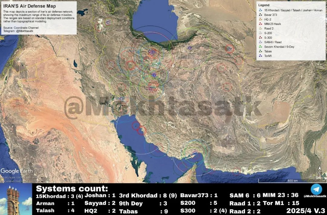 伊朗防空系統分佈(該圖在下文將多次運用)