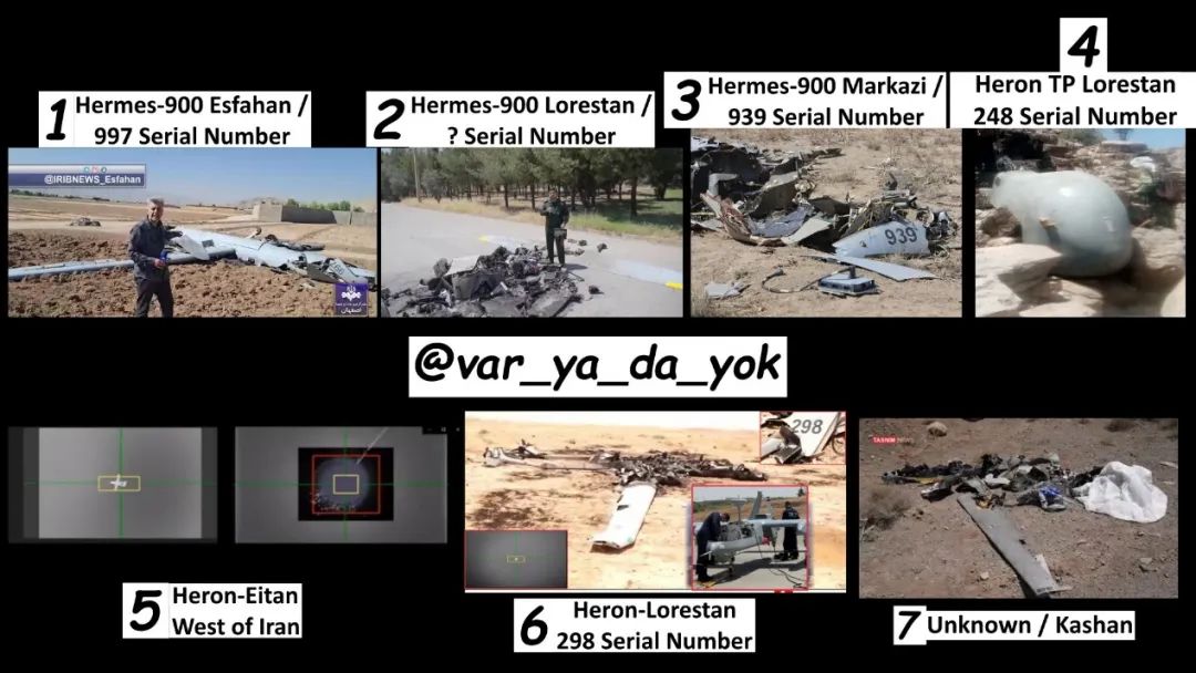 伊朗防空部隊所擊落7架無人機的墜落地點和編號