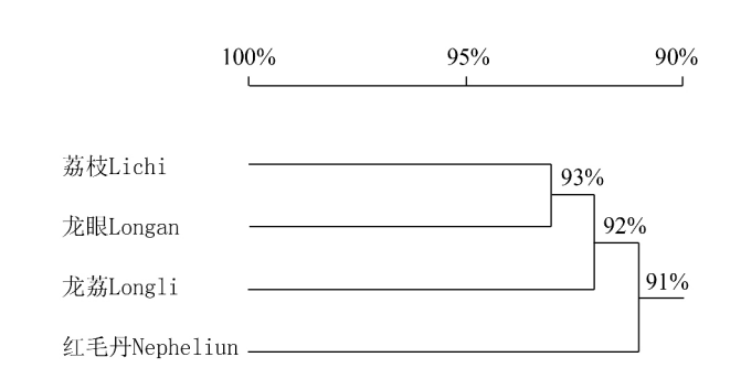 龍荔高於與紅毛丹的同源性,但低於龍眼與荔枝間的同源性(圖片來源:福建農業學報doi: 10.19303/j.issn.1008-0384.2019.01.006)