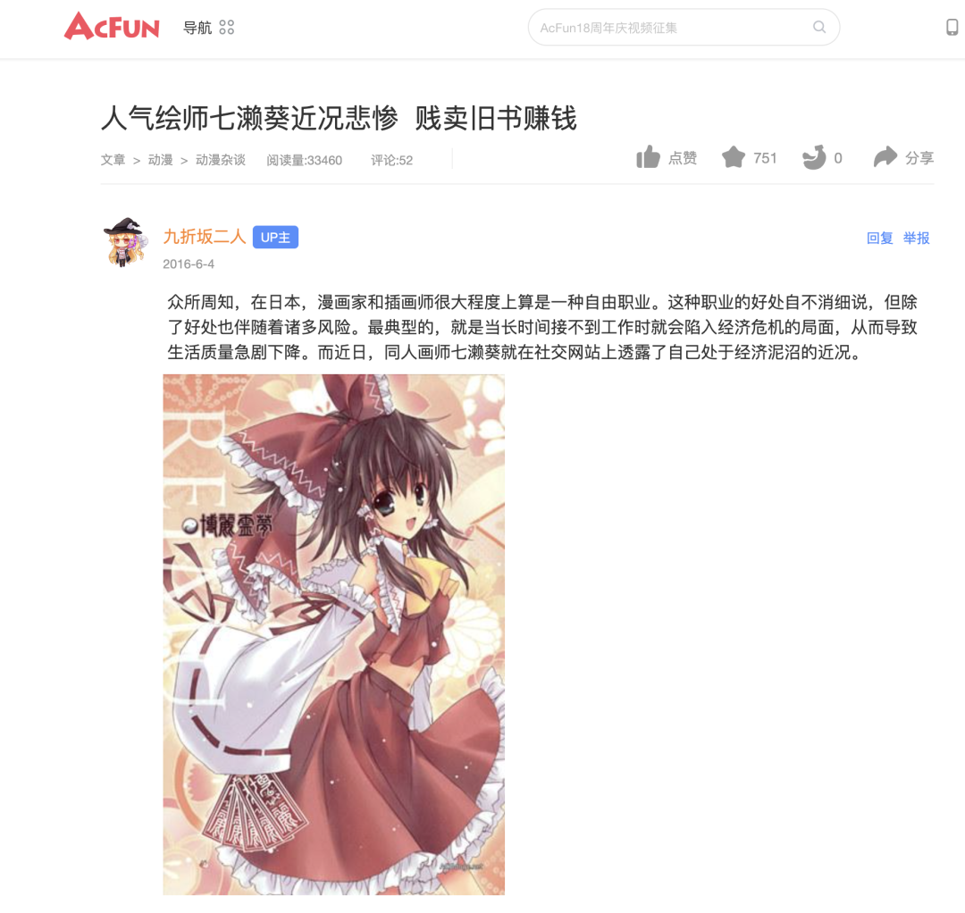 其實,2016年左右七瀨葵在國內小有過一段熱度,只不過是因為“人氣畫師賤賣舊書換錢”。