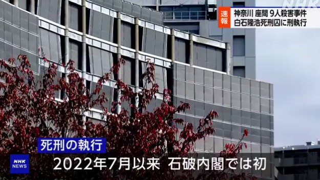 這也是石破內閣成立後,第一次執行死刑。