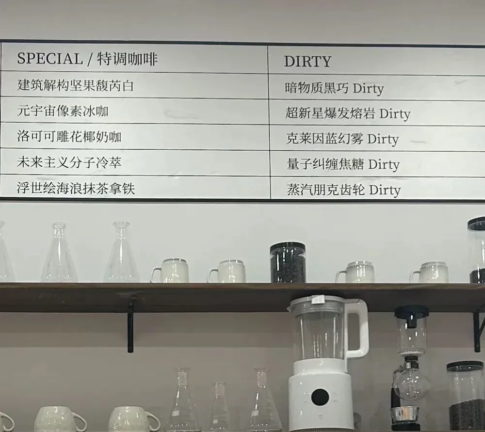 元宇宙像素冰咖、建築解構堅果馥芮白、量子糾纏焦糖dirty、未來主義分子冷萃。你讓齊澤克本人來點杯咖啡,他都不一定能點得明白。
