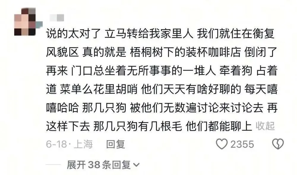 一個IP在法國的網友説,上海是一個逼得他想用法語罵人的地方;一個IP在意大利的網友稱,米蘭唯一一家預約制vintage店是從上海搬過去的,需要確保消費50歐才能進門。