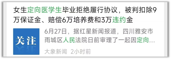 眾多違約被罰的個案也警示後來者,不要拿定向委培當跳板。