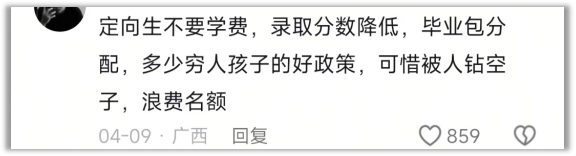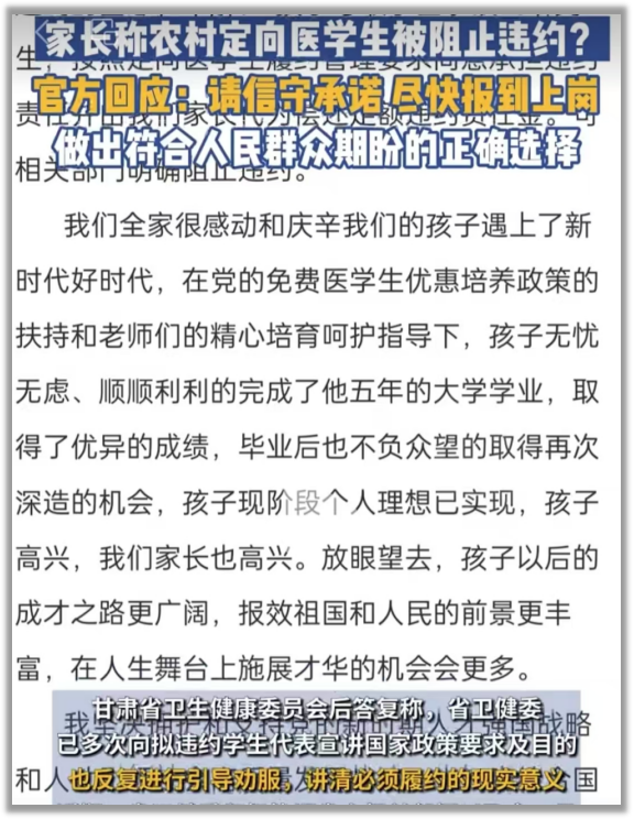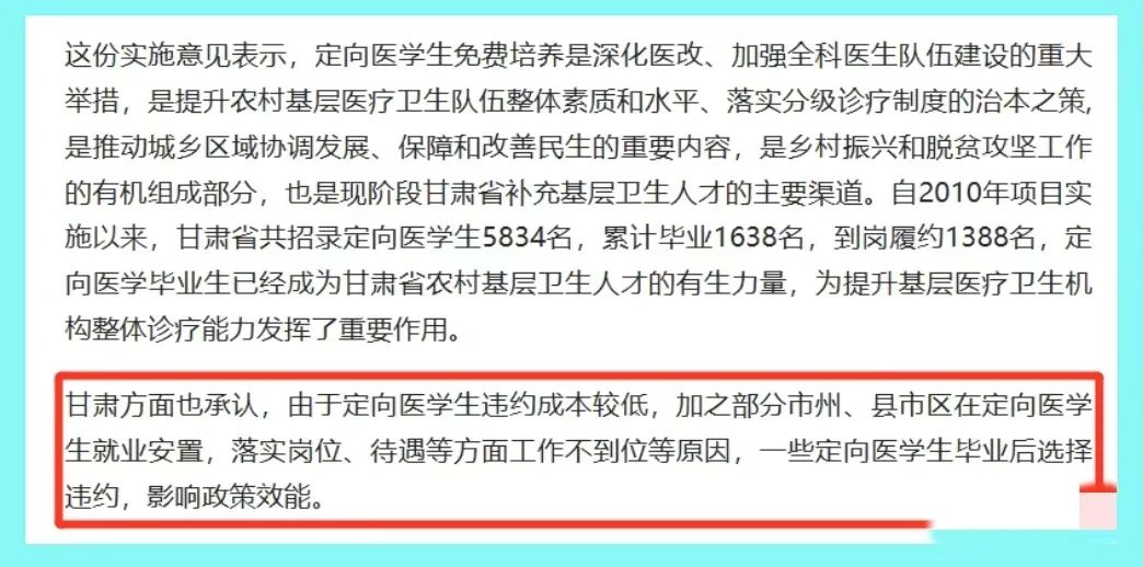 當然現實中也存在個別單位落實待遇不到位,倒逼定向生違約的情況。