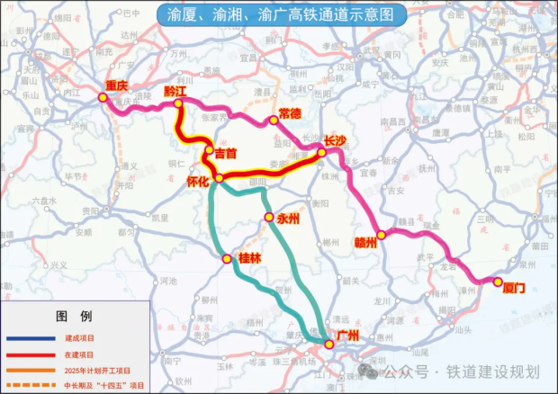 此次重慶東至長沙段貫通後,與已開通的贛州至廈門段,待建的長沙至贛州段,共同形成重慶至廈門的高鐵大通道。