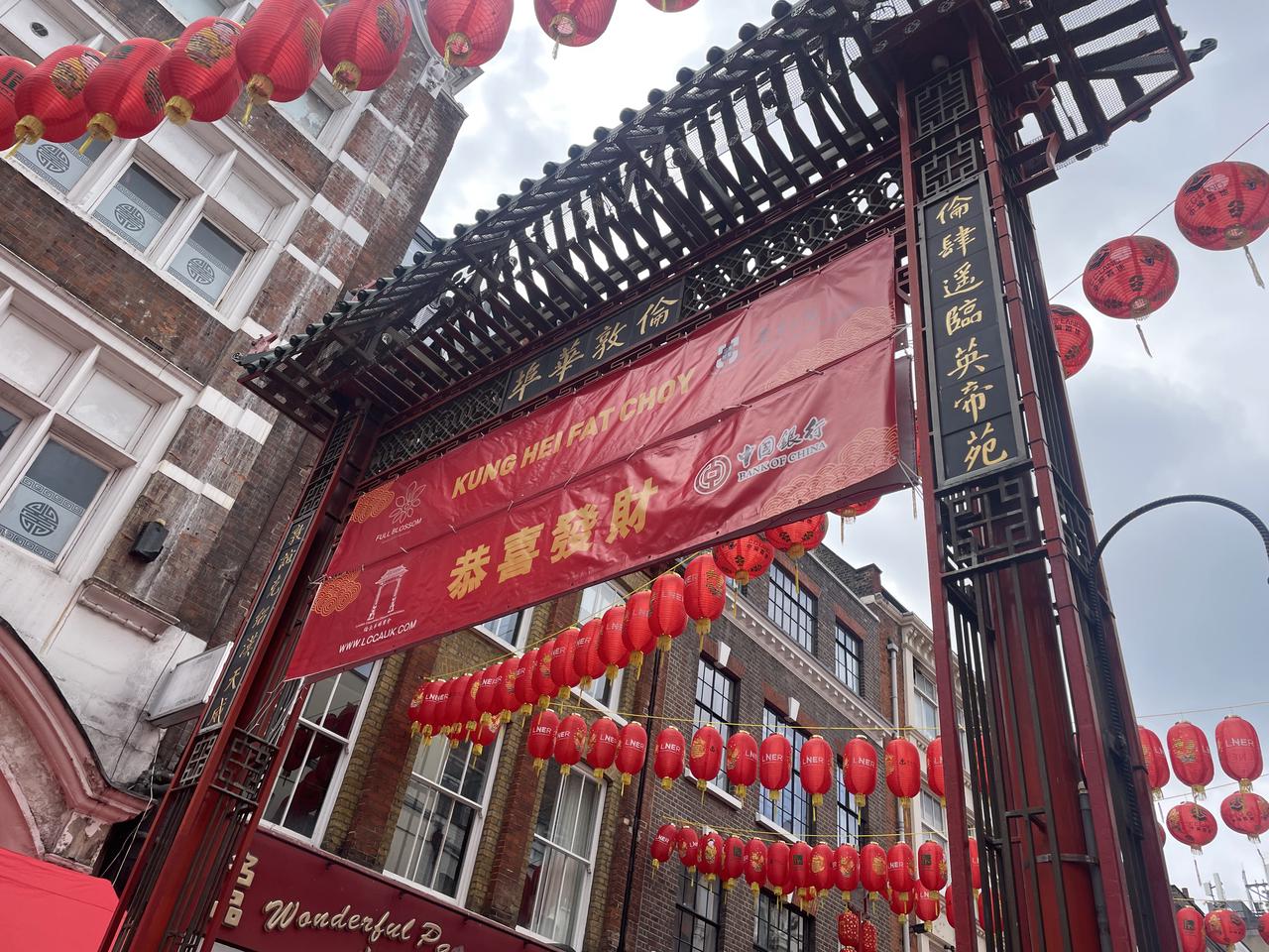 倫敦唐人街和西區劇院街相鄰,一邊是漢密爾頓、哈利波特、女巫等音樂劇的大幅海報,另一邊則是寫着中國對聯的牌坊,兩側都熙熙攘攘,顯出混亂中的和諧。