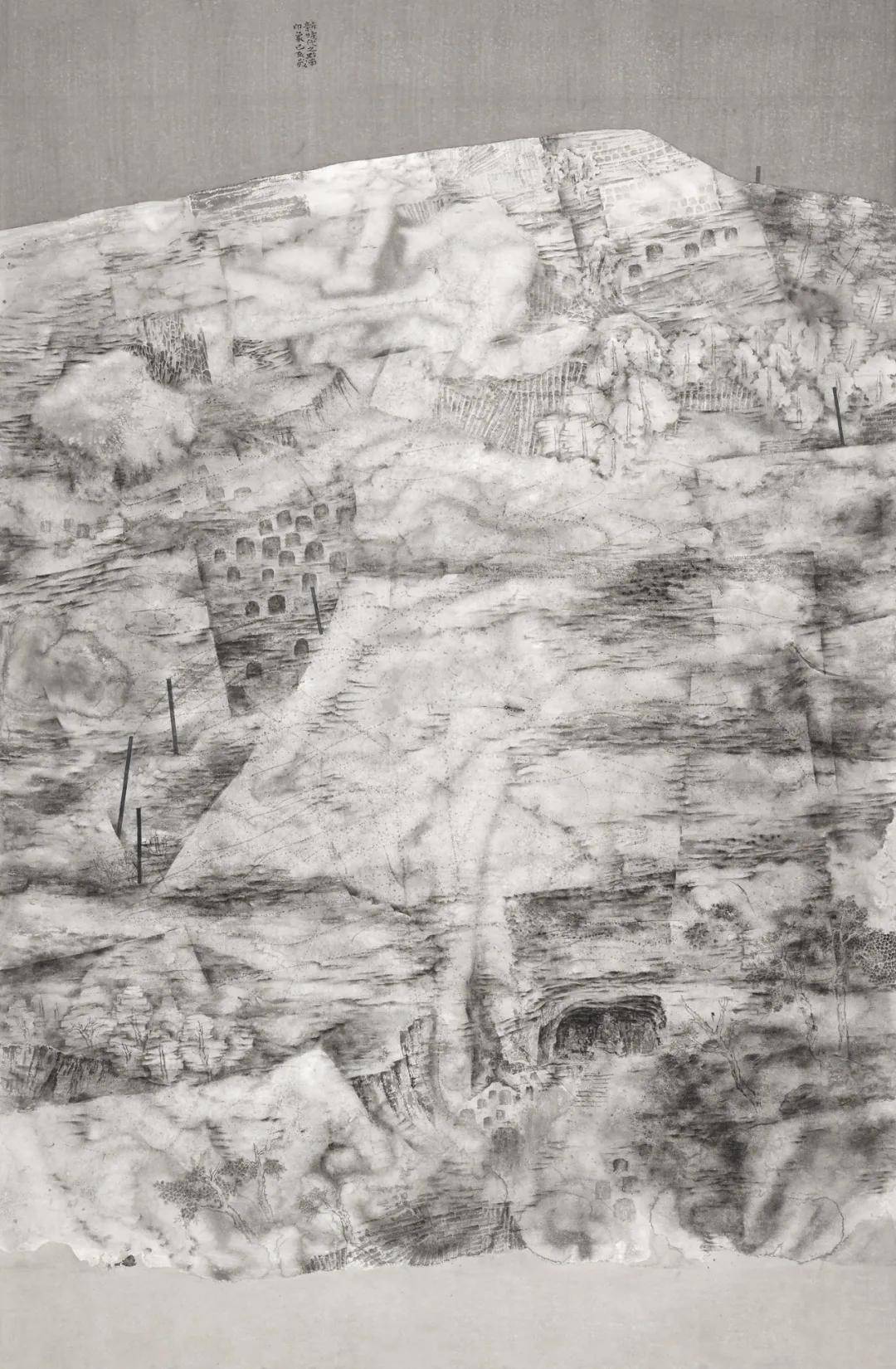 在意境的營造上,沛鋭亦是狠下功夫。首先,沛鋭的山水大多直接取材於自然——幾乎所有的大型創作的靈感都來自於旅行、觀看途中的寫生所得,這點有賴於他對生活的熱愛,對自然萬物之美的崇拜與敬畏。而在為這些巍峨雄壯的名山大川造境時,他多以粗樸的骨線、疏朗的氣韻筆墨賦予自然山川無盡的“崇高感”,並以積墨和細緻的線條營造出厚重的質感,賦予畫面沉穩厚重的山水氣質。其次,他的作品中多以飽滿構圖的處理方式來鋪陳崇山峻嶺的雄偉壯闊,為了避免出現畫面大而空的感覺,沛鋭特別注重對畫面整體和細節豐富性的把握與打磨,這種耗時的創作方式,雖偶爾會由於在細節處着墨過多而造成了局部畫面的凌亂瑣碎,但對於畫面的整體把控又使其作品能夠在外在保持攝人心魄的氣勢,同時又有內在耐人尋味的本質內涵。
