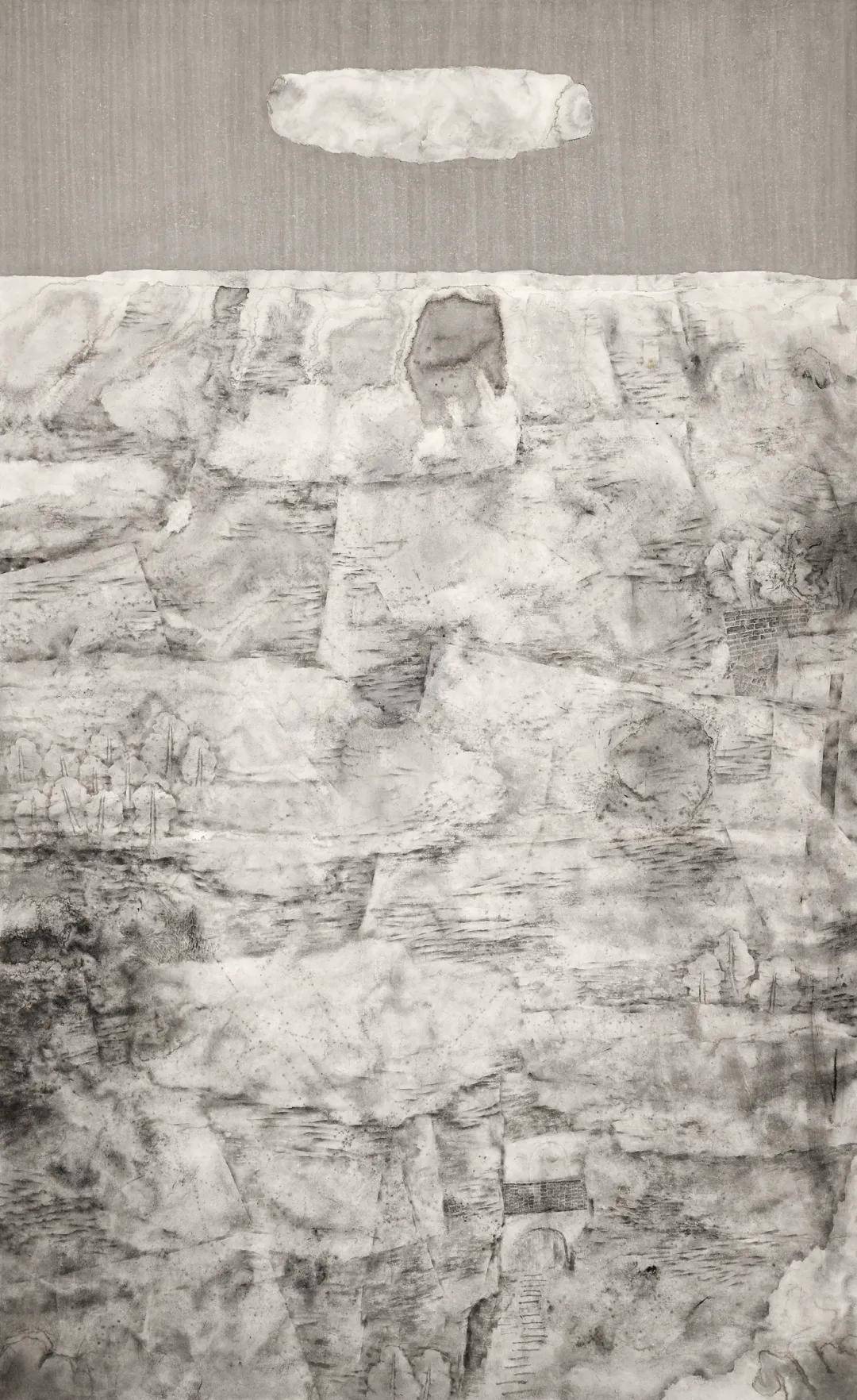 顯而易見,林沛鋭的山水畫創作追求一種宏達、厚重的審美質感。多年來,沛鋭通過從賴少其、陸儼少等近現代名家作品的研習中汲取書寫性用筆的靈感,使其形成了蒼茫厚重的繪畫風格。當然,構成其山水氣質的主要因素還在於他對自然的理解。對林沛鋭而言,綿延千里的羣山具有紀念碑式的氣場,為了展現這種雄壯山魂的精神力量,沛鋭在為山川造像時不斷強調繪畫的嚴肅性以及對自然的敬畏感,但這種創作上的嚴謹並不意味着完全放棄創作者的個體創造,在其畫面上,某種不確定的混沌氣息,或以雲霧的形式,或以山澗流水的形式不斷縈繞於濃墨構成的崇山之間,形成了強烈的黑白對比,這種處理方式,在我看來,恰是林沛鋭在巍峨羣山間騁目遊心的印記。