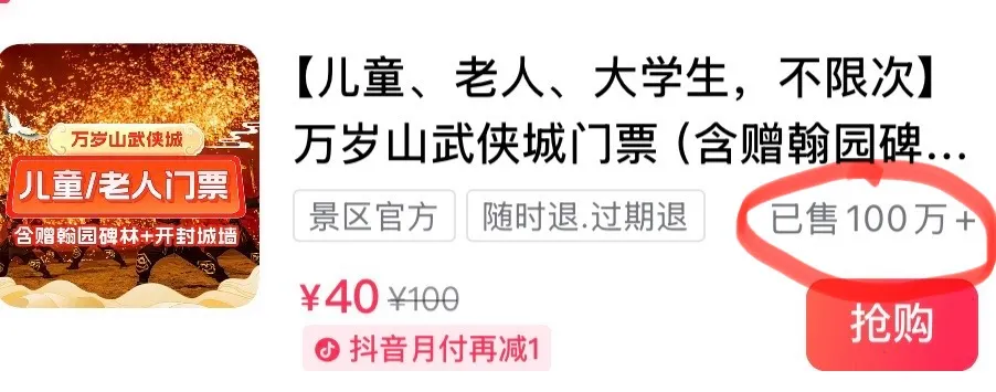 很多景點在出了爆款的梗或者內容之後,抖音團購的評分和銷量會隨之飆升。