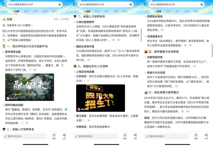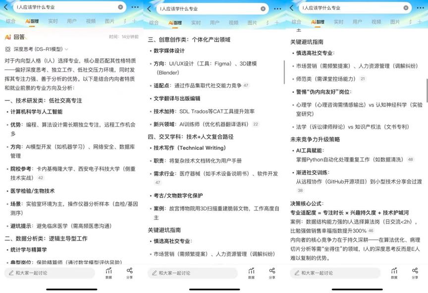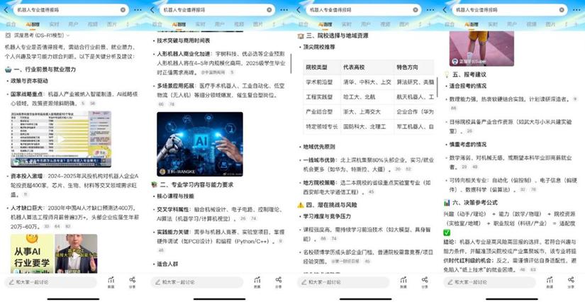 這也為考生提供了決策參考的第三極:從提供“結構化答案”到激發“開放性對話”。它提供的不只是答案選項,更是認知的拓展,是眾多“過來人”智慧在AI輔助下的整合。