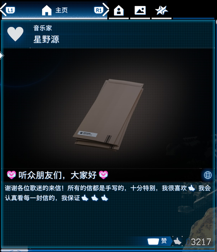 以及,他真的會送你新創作的專輯(當然是現實裏星野源的專輯),在這次的遊戲中,你可以在送貨路上隨時打開音樂播放器,欣賞其他人留給你的音樂: