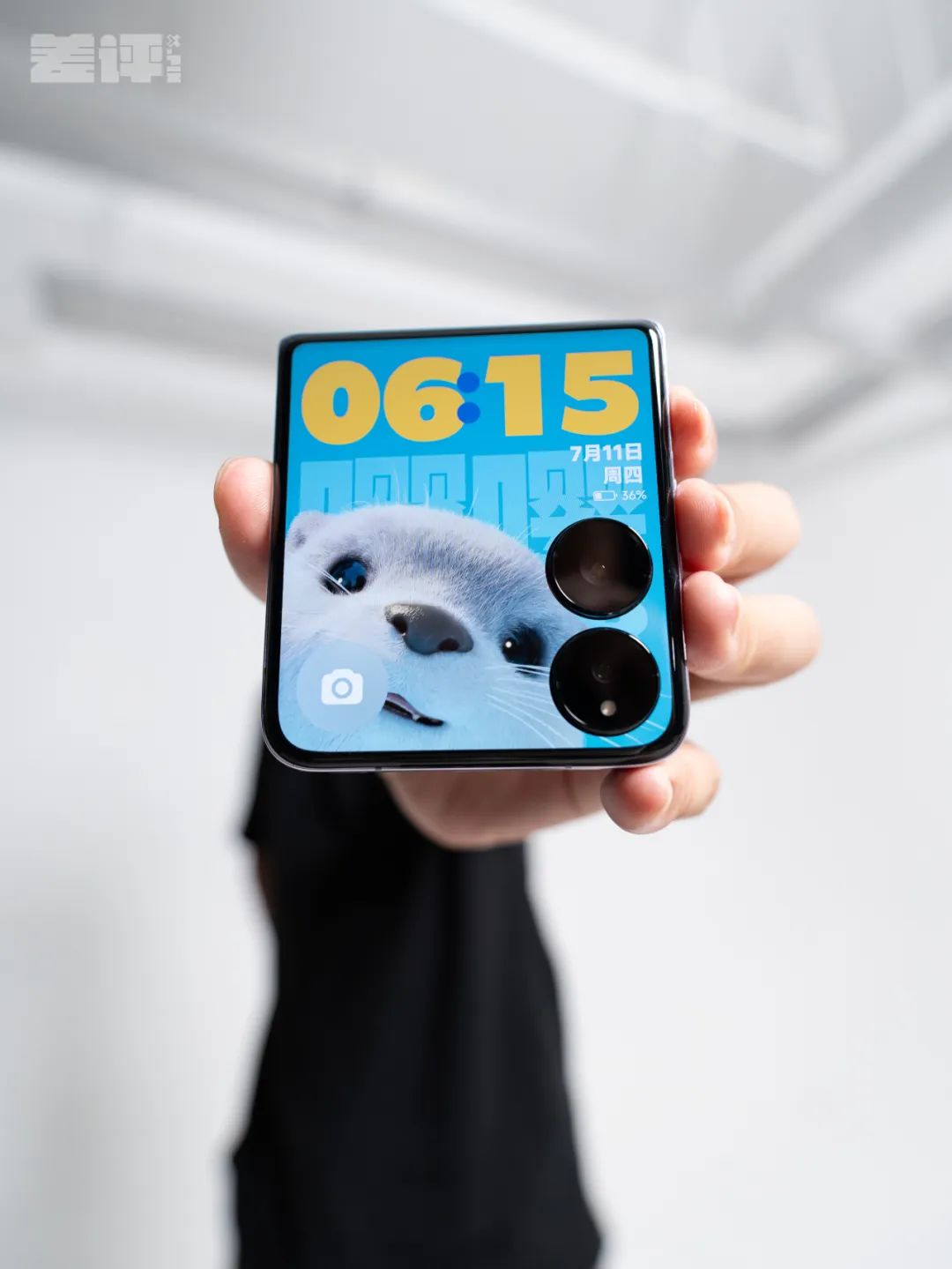 另外,外屏的鎖屏界面顏值也很高,只不過要想做到和官方演示的那樣,畫面主體和鎖屏時鐘字體完美堆疊,對壁紙的要求還是有點高的。。。