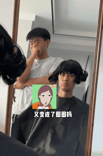 他想要拉直,卻又操作失敗,成了“圖圖媽”。