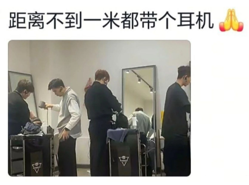 他們戴着一個藍牙耳機,明明兩個人隔着幾米,喊一嗓子就能聽到,卻都要按住耳機,殷切呼喚對方的名字。
