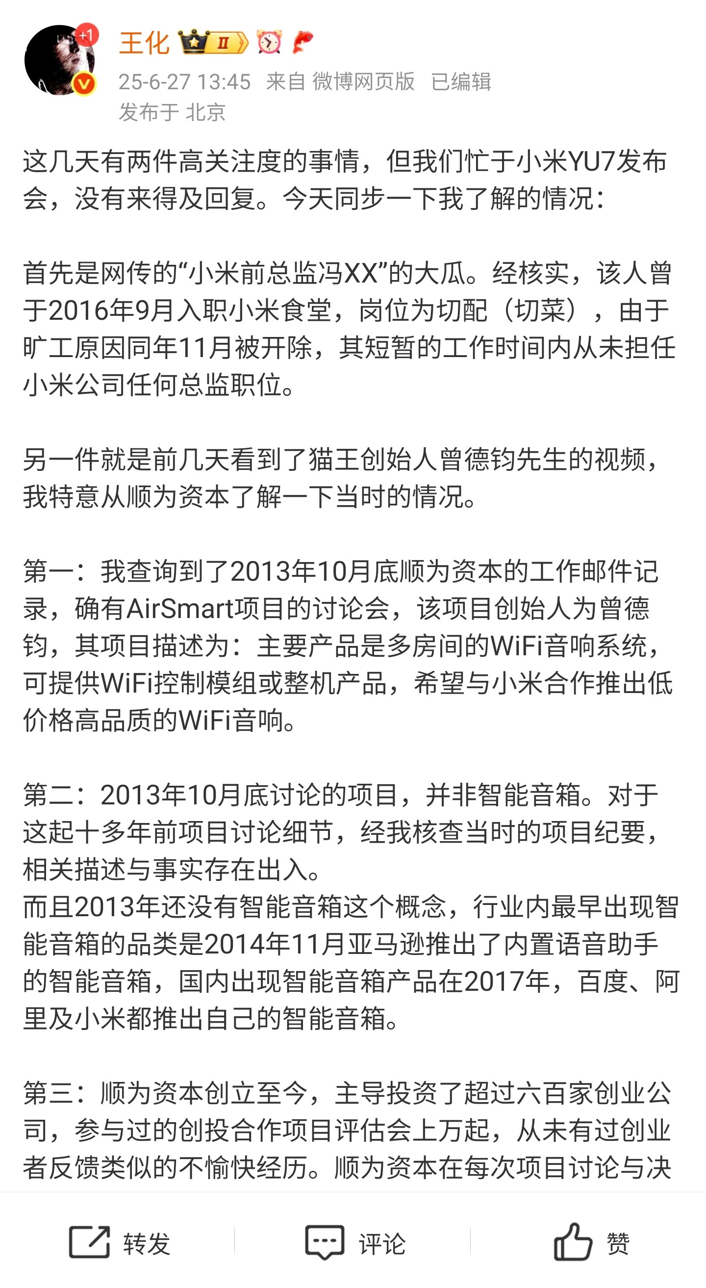 他糟蹋的女的宮外孕子宮都摘了的都有,有的快恨死他了,但就是拿他沒辦法,很多人都礙於隱私和麪子所以就這麼多年都沒發酵,這事這回能搞這麼大一個是人數太多 女的們聯起手要搞他,再一個也有可能是小米的競品公司看這是個機會背後推了一撥流量,要不然也不會鬧這麼沸沸揚揚的。