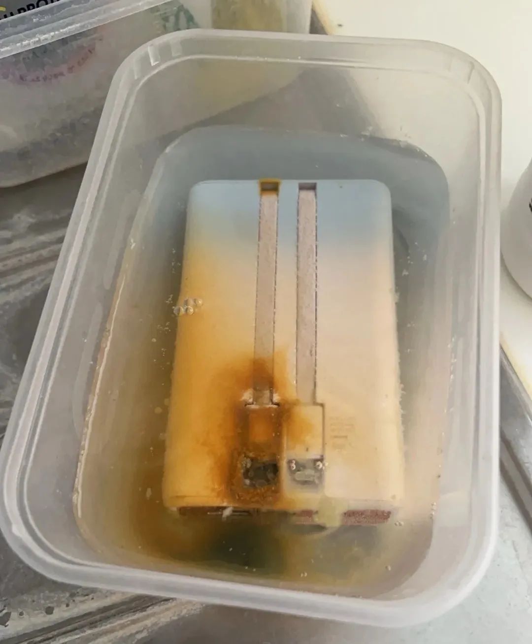 也有消費者瞭解到,可以把充電寶浸泡在高濃度鹽水中使其失活等方式來處理,但浸泡過後被明顯污染的鹽水也讓人充滿擔憂。