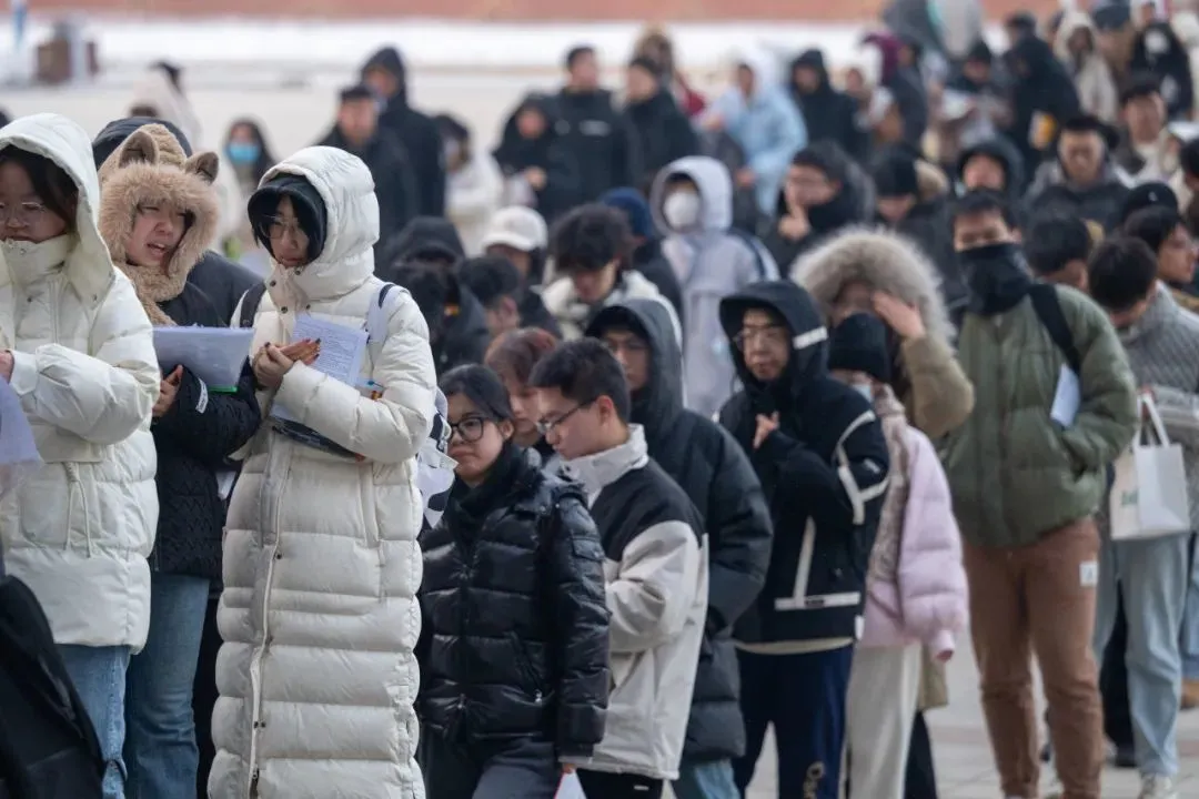 2025年全國碩士研究生招生考試於2024年12月21日至22日舉行,圖為考生在某考點排隊進入考場 圖源:新華社