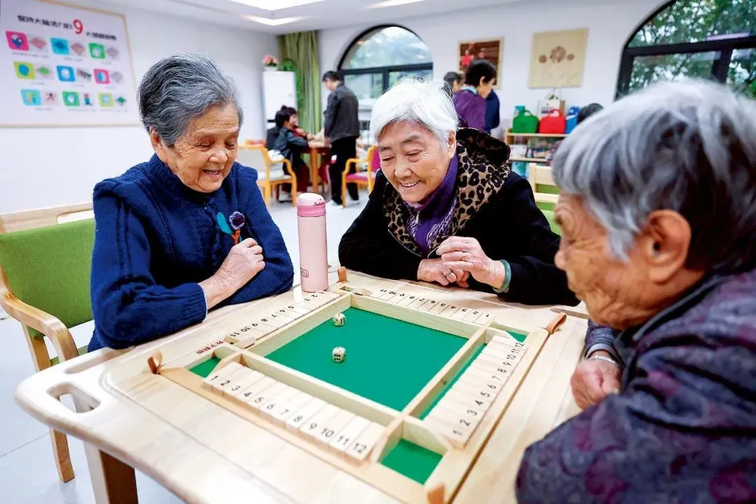 2023年11月10日,浙江麗水市,在雲和縣百齡幫鳳凰家園長者養護中心的老年木玩活動室內,老人們在玩益智木玩。圖/新華