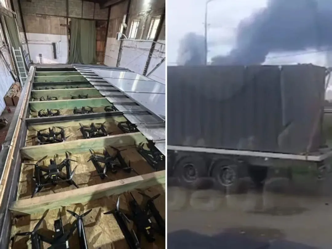 ▶▷烏特種部隊將FPV自殺式無人機藏匿於改裝民用卡車的木製頂棚內,利用陸路物流網絡分批潛入俄羅斯境內,部署於加油站或偏僻路邊,在目標基地周邊秘密靜默數月,成功規避俄軍偵察。