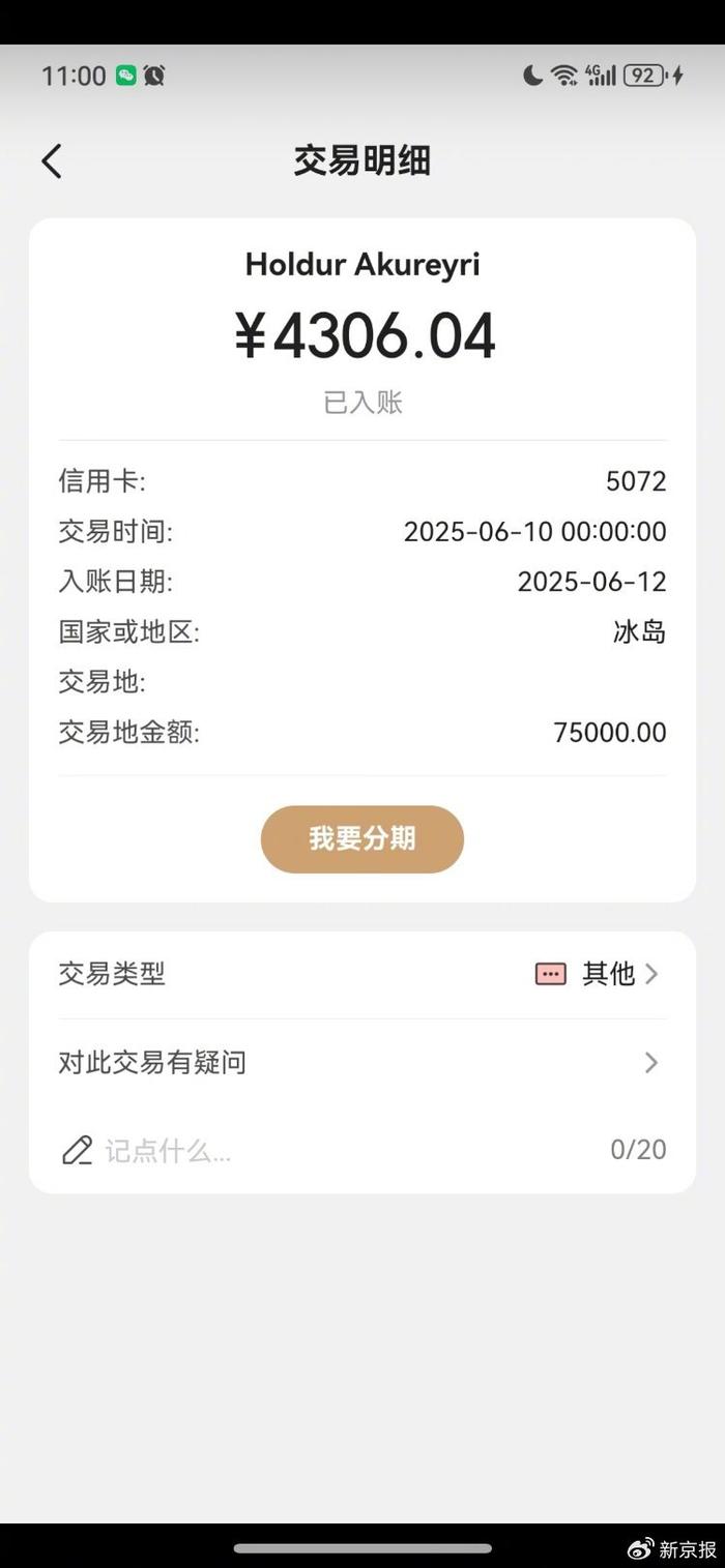 李女士立刻聯繫了國內租車APP,工作人員讓他們先行墊付。“租車行現場就刷了我們的信用卡,刷卡金額為243萬克朗,但沒刷成功。” 因為擔心誤機,在支付了4000美元(摺合人民幣2.8萬元)後,他們才從冰島登機回國離開。“非常影響旅行心情。這4000美元對方也表示因為沒有付清總額,暫時不能給出任何單據。”