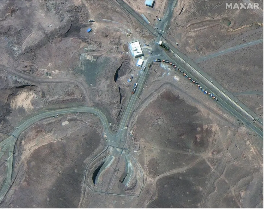 ▲麥克薩科技發佈的衞星圖像顯示,在美軍發動空襲前幾天,大量卡車在福爾道核設施外一字排開。(圖源:美媒)