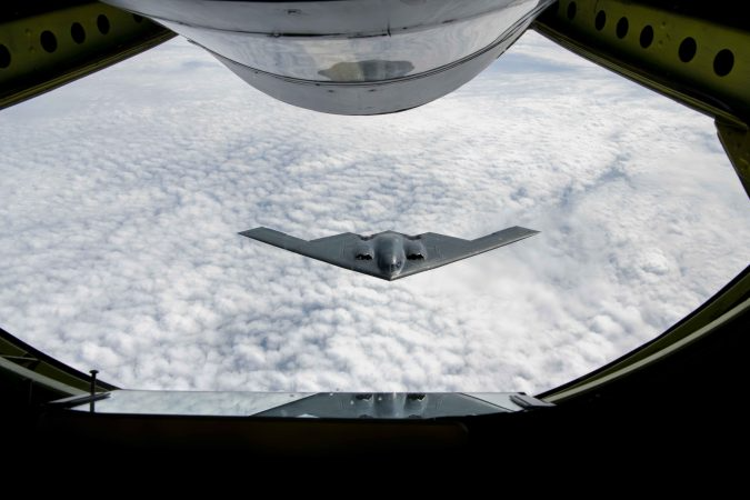 2024 年 9 月 10 日,一架美國空軍 B-2 Spirit 隱形轟炸機飛越印太責任區。美國空軍高級飛行員薩曼莎·懷特 (Samantha White) 攝