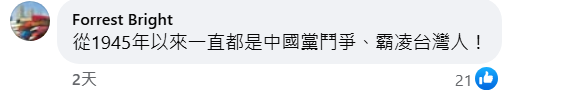 你講國民黨在大陸抓壯丁去台灣、逃台之後還多次轟炸大陸城市,他説那是國民黨乾的跟台灣人有什麼關係?