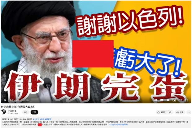 今天的文章,以一個讓我哭笑不得的島內綠色自媒體視頻為開頭:伊朗遭到以色列襲擊之後,台灣綠營紛紛彈冠相慶,以圖中這個粉絲量73.7萬、在島內算得上大網紅的自媒體來説,他就一本正經地分析,隨着“大陸盟友”伊朗被以色列狂轟濫炸,預示着大陸又雙叒叕要崩潰了,而台灣將是最大贏家!