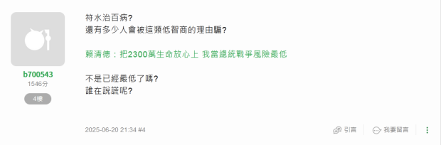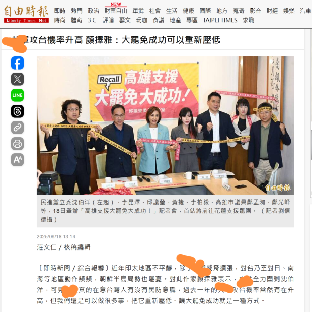 那麼,如果説美國、以色列父子雖然狼狽為奸、醜陋不堪,但至少還知道使用轟炸機、導彈、炸彈、無人機去作戰,台灣綠營眼裏究竟做什麼可以打贏戰爭?答案是去參加賴清德親自策劃、意圖罷免一批國民黨民意代表、讓民進黨實現一黨獨大的“大罷免”,綠營聲稱,大罷免就是戰爭準備,雖然兩岸戰爭風險升高,但是沒關係,只要島民都去參加“大罷免”,戰爭風險就會降低啦!