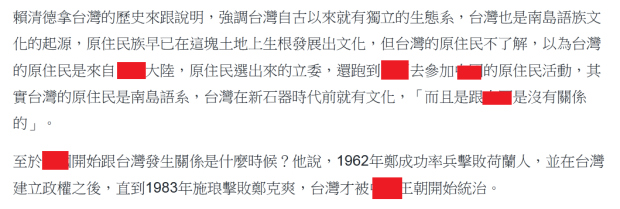 賴清德於6月22日妄稱,台灣在鄭成功之前與中國大陸無關