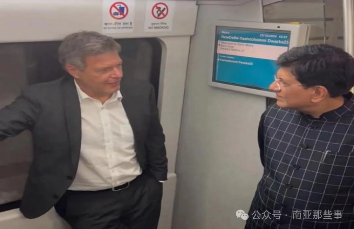 當時德國總理朔爾茨率團訪印度,印度工商部長戈亞爾與德國經濟部長哈貝克在德里共同體驗地鐵。