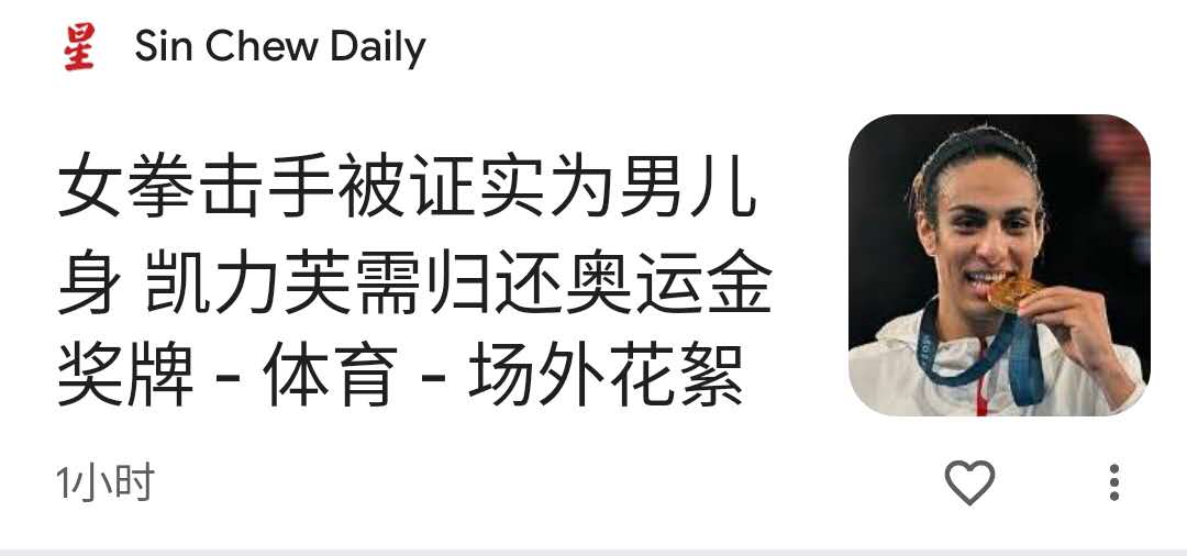 棉花絮在德國華人羣的朋友報道一則新聞讓棉花絮感慨萬千。德國華人羣裏的朋友發消息説:“國際奧委會早在2023年就知道哈利夫是XY染色體的男性,卻還是讓哈利夫參加巴黎奧運會的女子比賽,這不是明擺着欺負人嗎?“沒錯,棉花絮也這麼覺得!