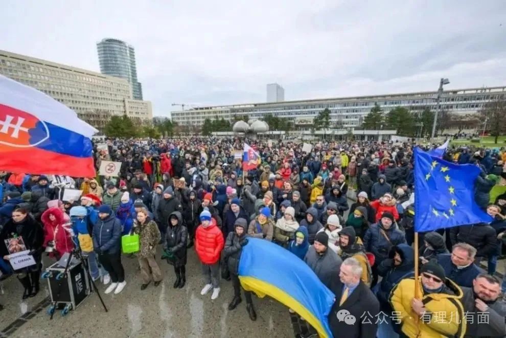 2024年12月菲佐訪俄之後,斯洛伐克反對派更是在國內組織了大規模的抗議活動。多地爆發大規模反政府示威遊行,超過十萬民眾手持歐盟旗幟,強調斯洛伐克應與歐盟與北約保持一致立場。