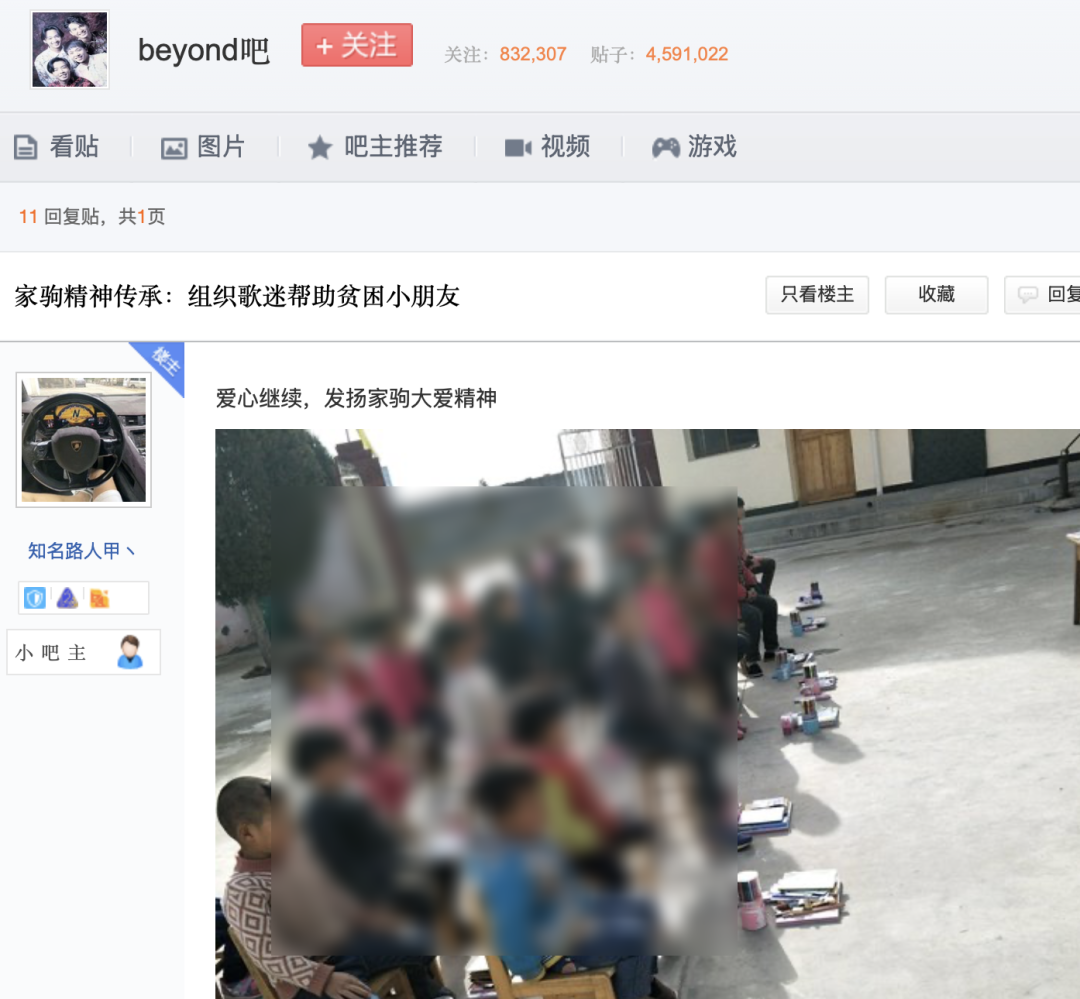 2018年,Beyond吧組織歌迷們給貧困山區的小學生送文具;