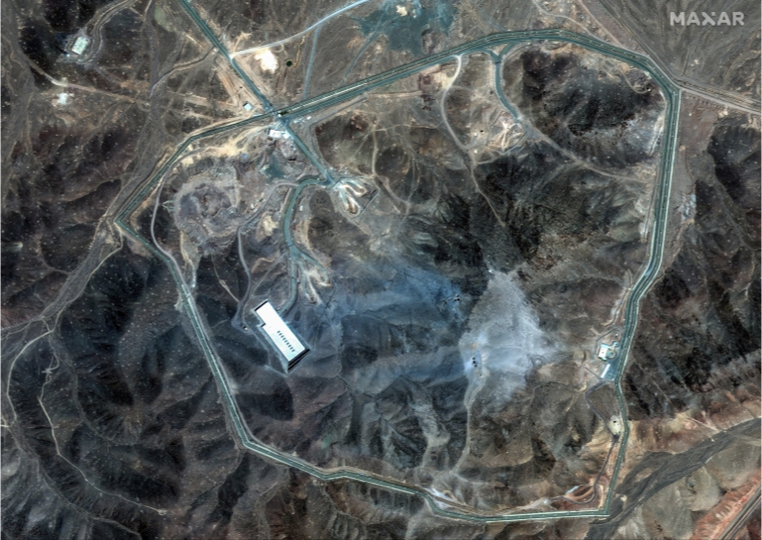 ▲ 美國Maxar公司於2025年6月22日提供的衞星圖像顯示了美國襲擊後伊朗福爾多濃縮設施的受損情況。圖源:Maxar Technologies