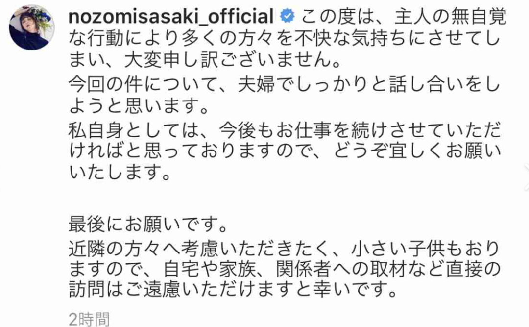 或許如佐佐木希所説,這一切的隱忍都是為了孩子有個完整的家庭。這點相信網友是可以信服的。小孩是母親最大的軟肋。