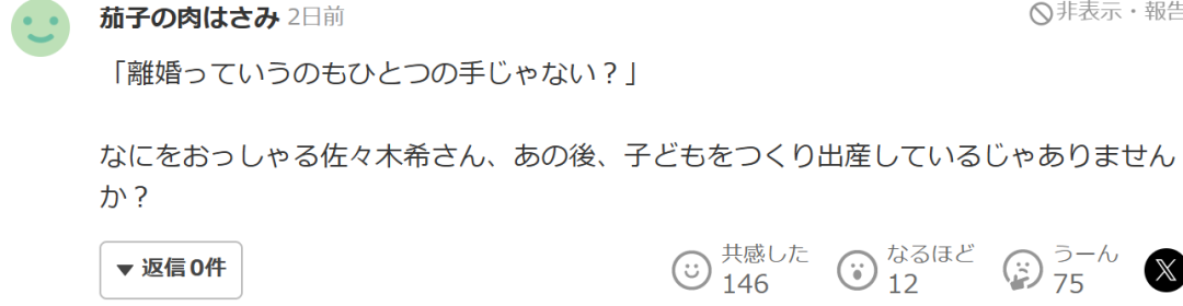 不過也有日本網友覺得都沒辦法原諒丈夫還能再生第二胎,實在是沒辦法理解佐佐木希的腦回路。