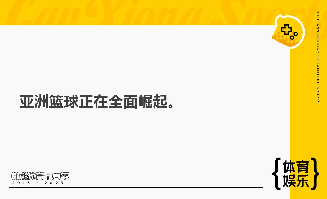 亞洲及太平洋地區是全球人口最密集、經濟增長最快地區。如今,這片地區正在全方面的快速崛起,邁入世界籃球的核心序列,重塑全球籃球版圖。尤其是當日本男籃在2023年男籃世界盃爆冷擊敗芬蘭、在2024年巴黎奧運會與法國戰至加時,菲律賓歸化球員克拉克森在世界盃賽場貢獻了場均26分的瘋狂表演,中國年輕中鋒楊瀚森在NBA選秀試訓中展現的現代籃球的特點,並且被波特蘭開拓者在2025年NBA選秀第16順位被選中時,世界範圍內的從業者們或許開始意識到:亞洲籃球已經進入新紀元,亞洲正在成為全球籃球發展的重要引擎。