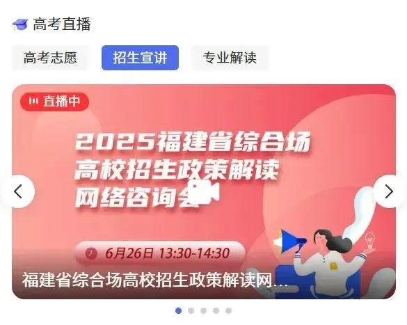 百度的高考服務裏,有一個“高考直播間”板塊,這裏不僅可以蹲點觀看高校招生辦的直播,還能進入學長學姐的直播間即時諮詢,也算是一個特色功能。