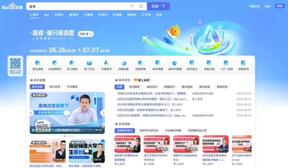 夸克高考、百度高考專欄、QQ瀏覽器AI高考通
