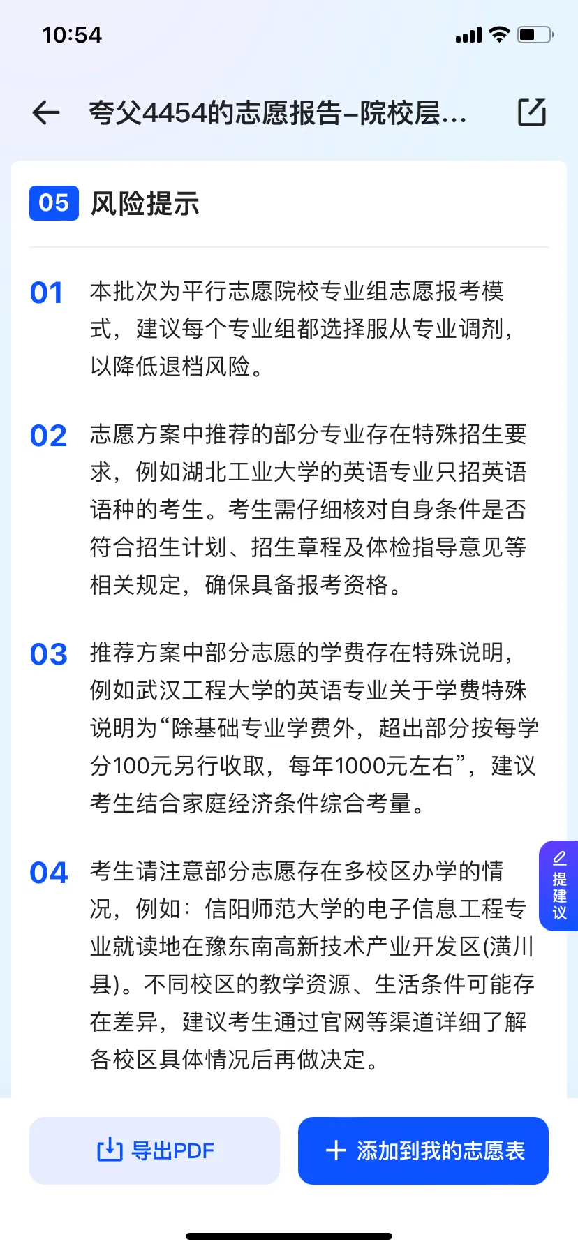 最終,夸克給出的結果還算豐富,給出了考生基本情況、支援填報策略設計、志願填報明細、志願表解讀、風險提示五大板塊內容,並且整體內容詳實,具備極高的參考性。